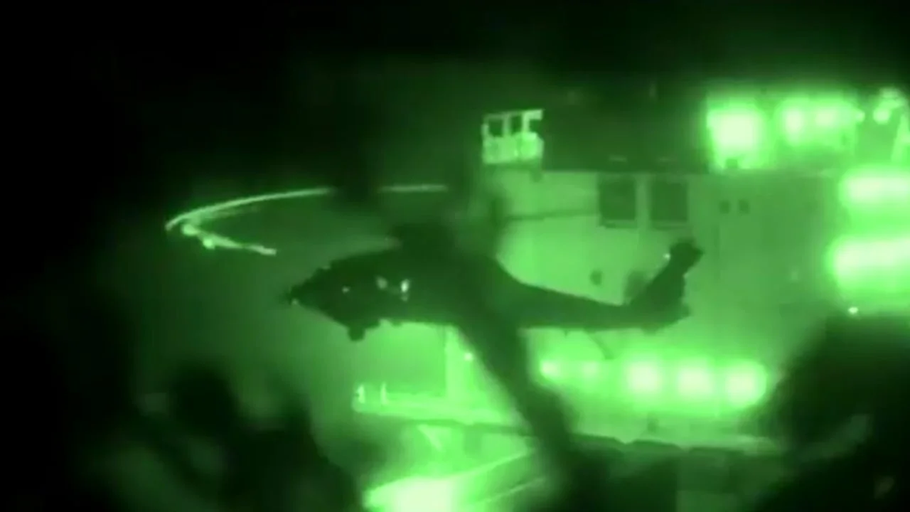 Snimka zaslona Snimke vojnog desanta otkrivaju trenutak visokog rizika dok Washington potvrđuje zapljenu teretnjaka, a Teheran optužuje SAD za piratstvo na otvorenom moru.